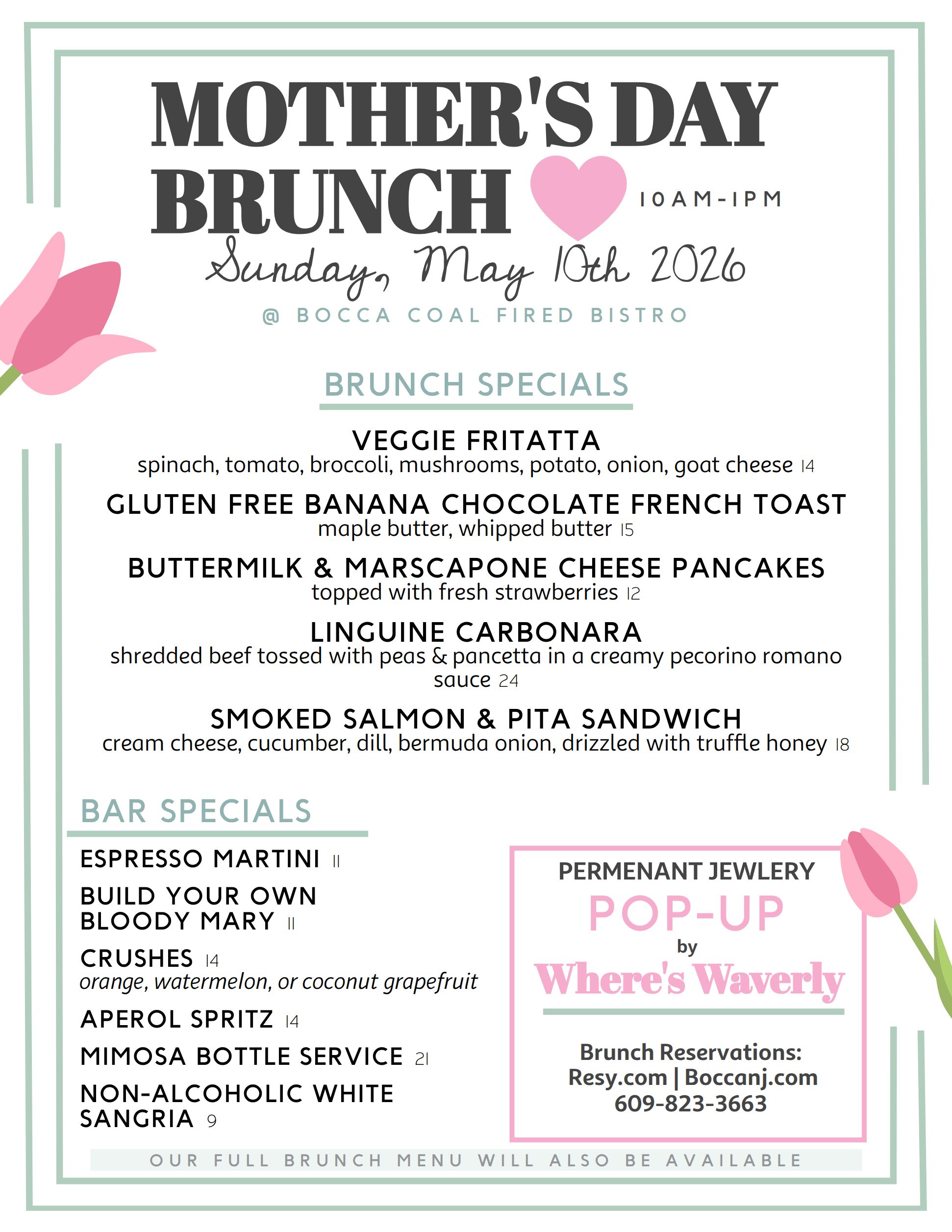15/04 Mother’s Day Brunch Sunday, May 10th – Permanent Jewelry Pop-Up by Where’s Waverly Reservations
